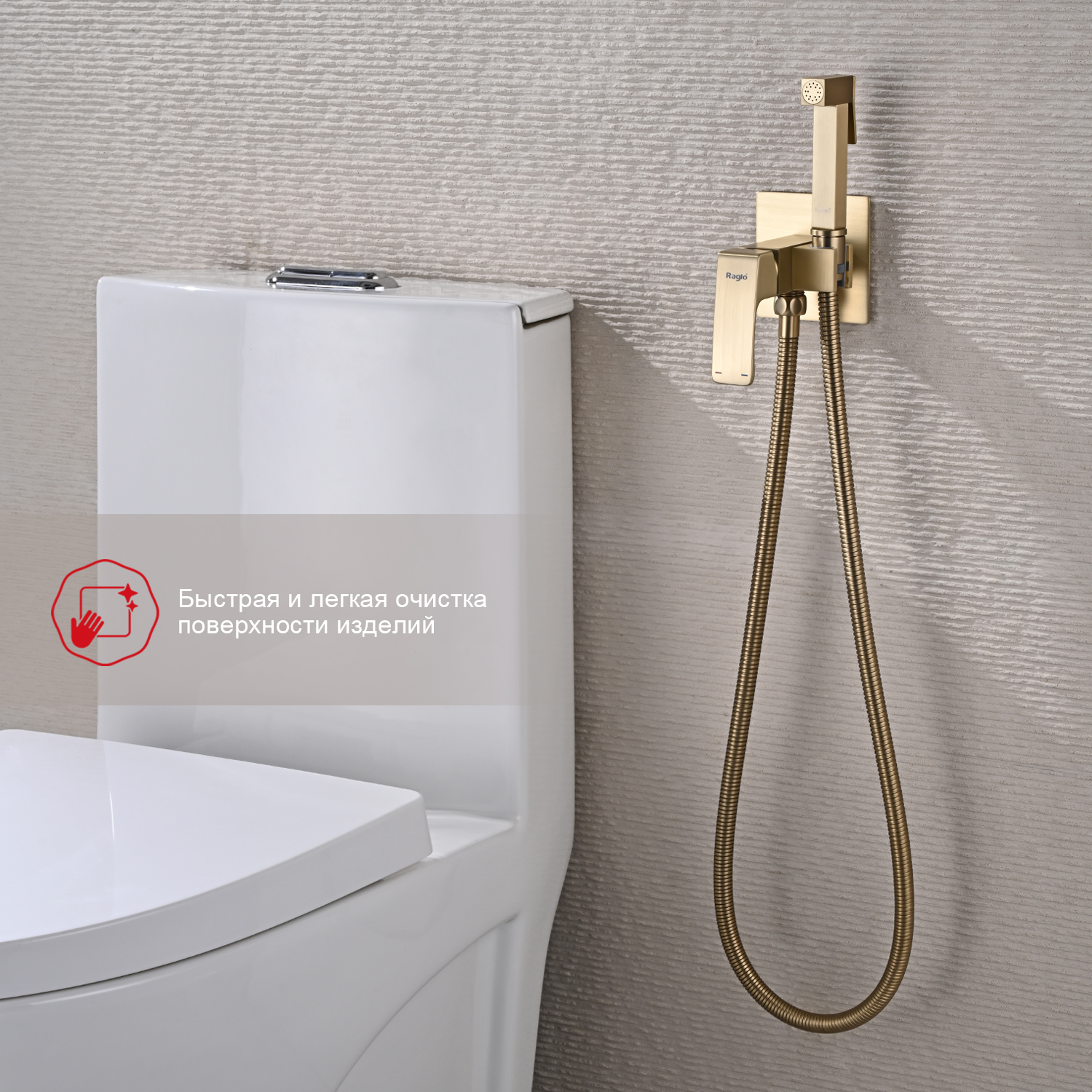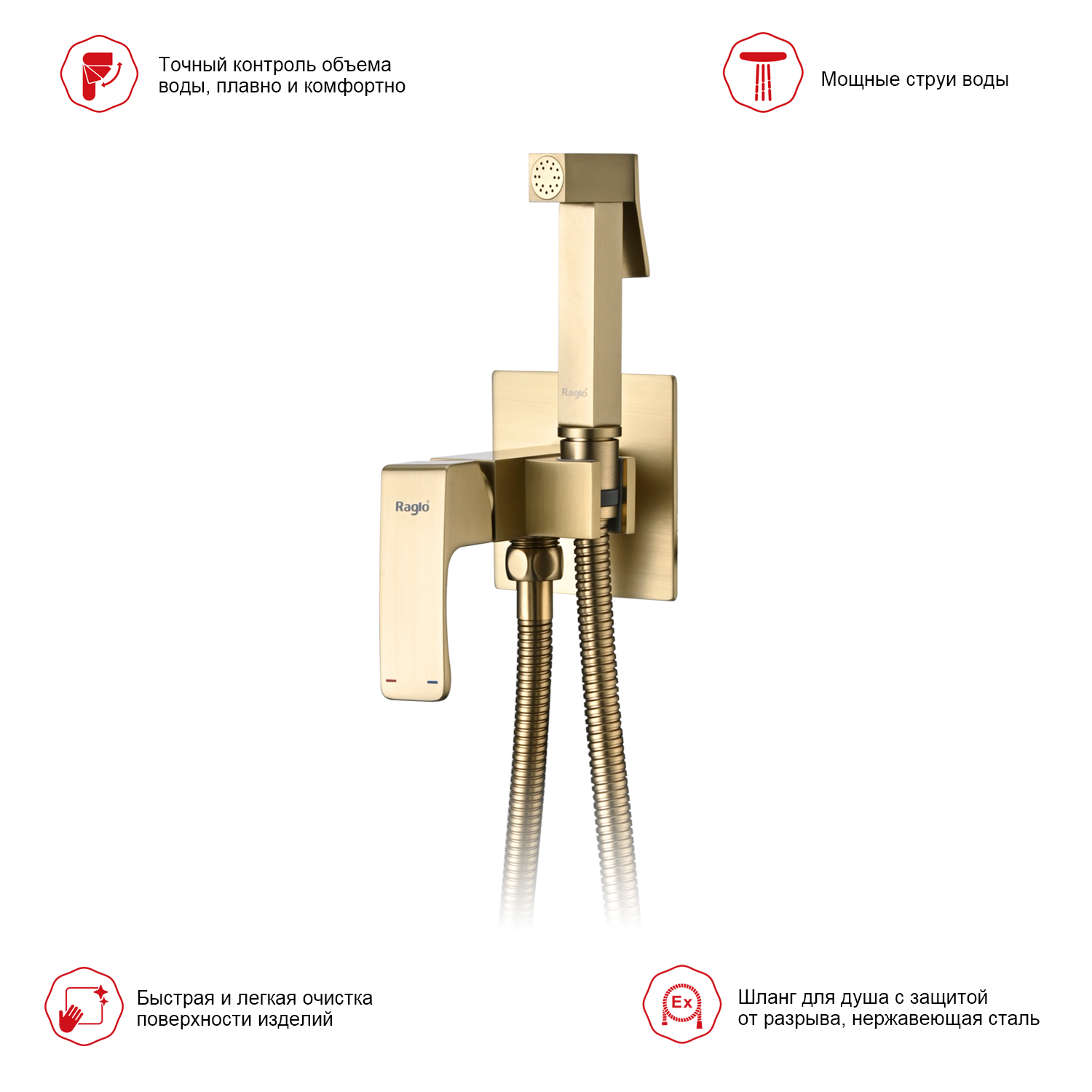 Закажите товар "Гигиенический душ со смесителем Raglo R01.52.03, сатин золотой"