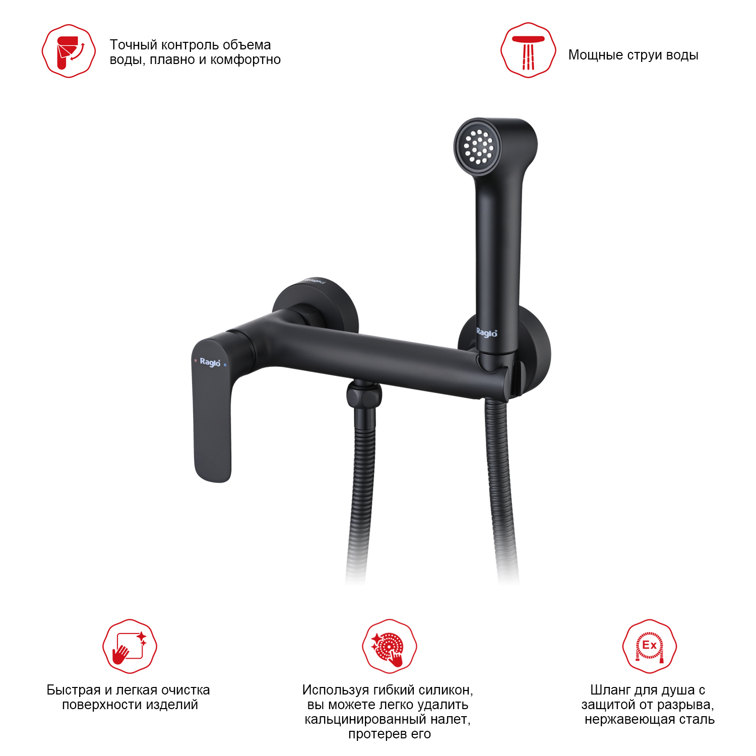 Закажите товар "Гигиенический душ со смесителем Raglo R03.51.06, черный"