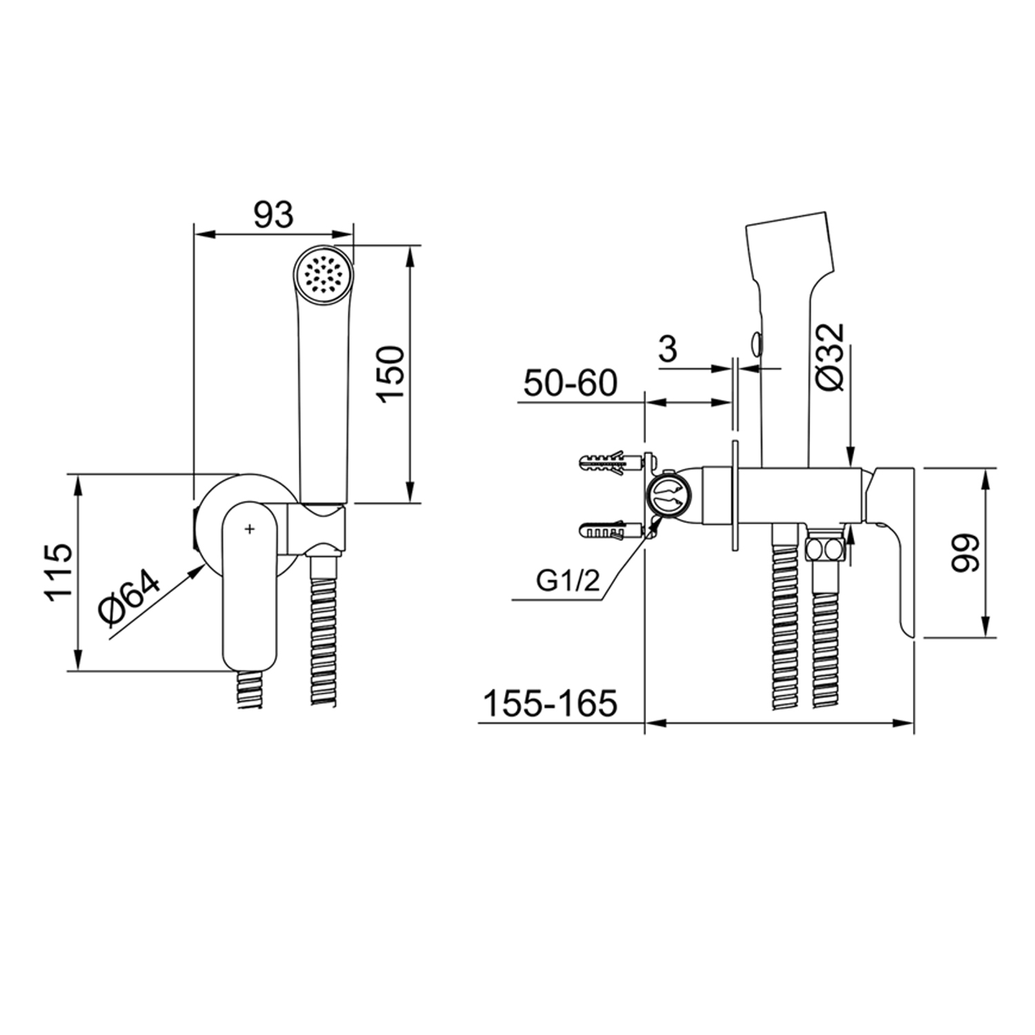 Гигиенический душ со смесителем Raglo R03.52.06, черный