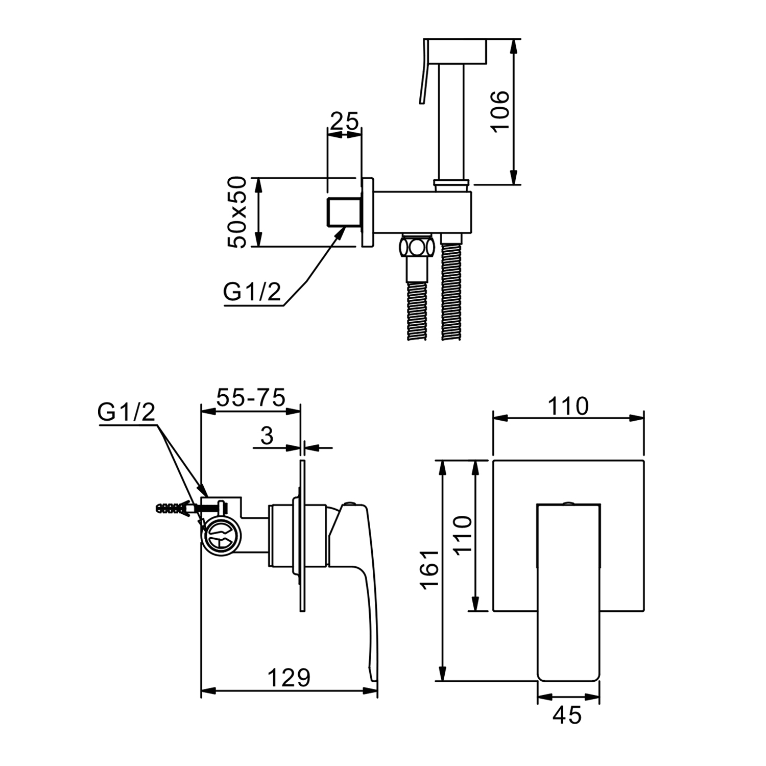 | Комплектация | Смеситель, внутренняя часть, шланговое подключение, лейка, шланг. |
