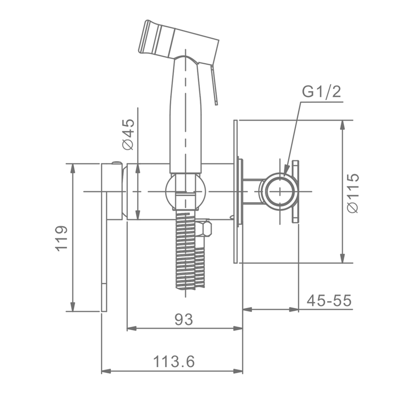 Гигиенический душ со смесителем скрытого (внутреннего) монтажа представляет собой удобный альтернативный вариант стандартному биде. Изготовлен из нержавеющей стали SUS304. Шланг обладает достаточной длиной 120 см, что вполне достаточно для комфортного использования. 2-х режимная лейка для гигиенического душа хорошо держится в руке и обеспечивает комфорт всех проводимых манипуляций с использованием биде для унитаза. В комплекте гигиенический душ, держатель лейки и душевой шланг. Имеется нажимное переключение на душ и керамический картридж диаметром 35 мм (артикул R500.35). Присоединительный размер - G 1/2, предназначен для одного потребителя. Защита от обратного потока и ограничение температуры отсутствуют.