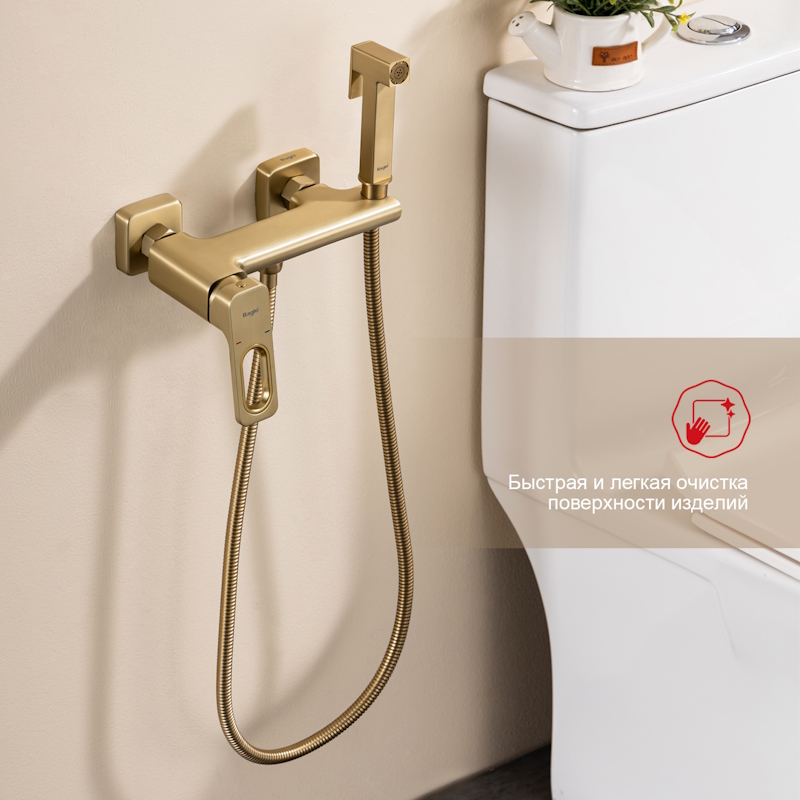 Закажите товар "Гигиенический душ со смесителем Raglo R51.51.03, сатин золотой"