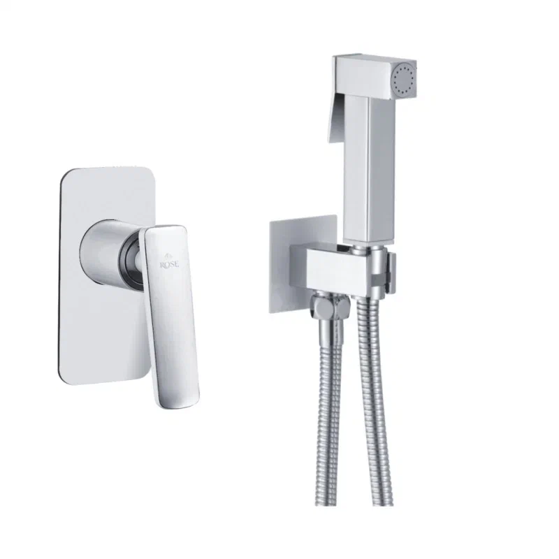 Гигиенический душ со смесителем Rose R1605F, белый/хром. Управление: рычажное. Материал: латунь. Монтаж: внутренний (скрытый).