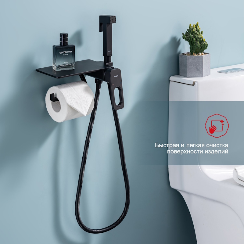 Закажите товар "Гигиенический душ со смесителем встраиваемый с полкой и бумагодержателем Raglo R51.55.06, черный"