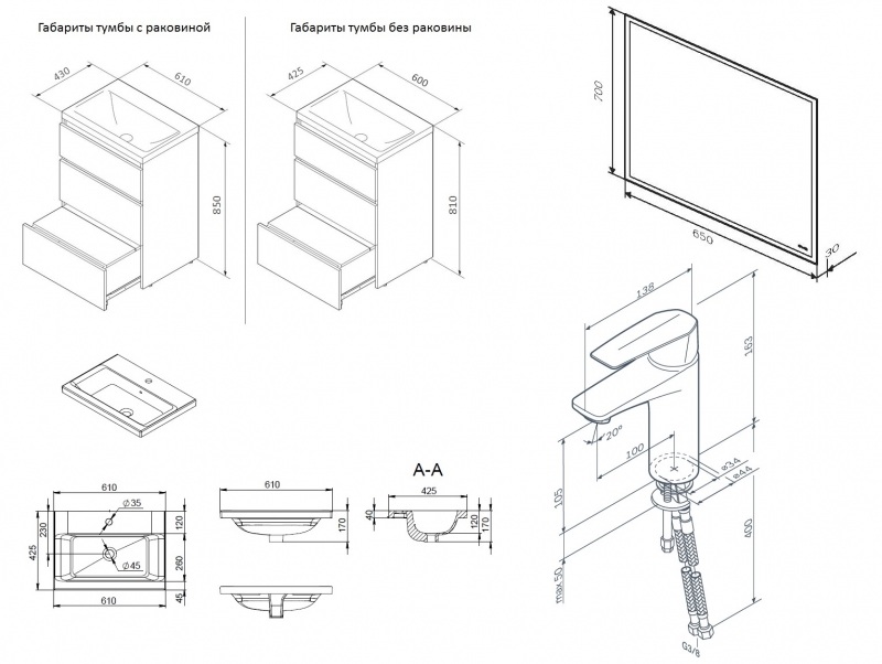 Комплект мебели для ванной AM.PM Gem S 60 BK91GC.