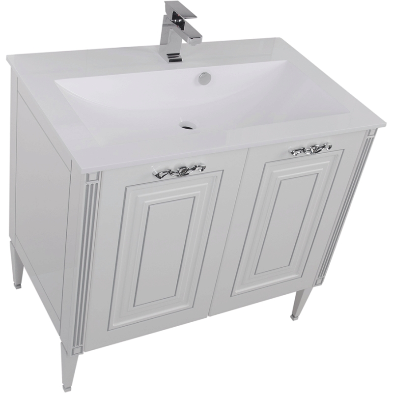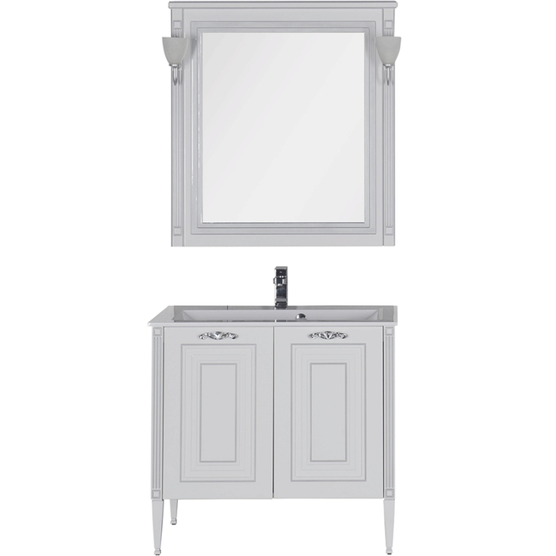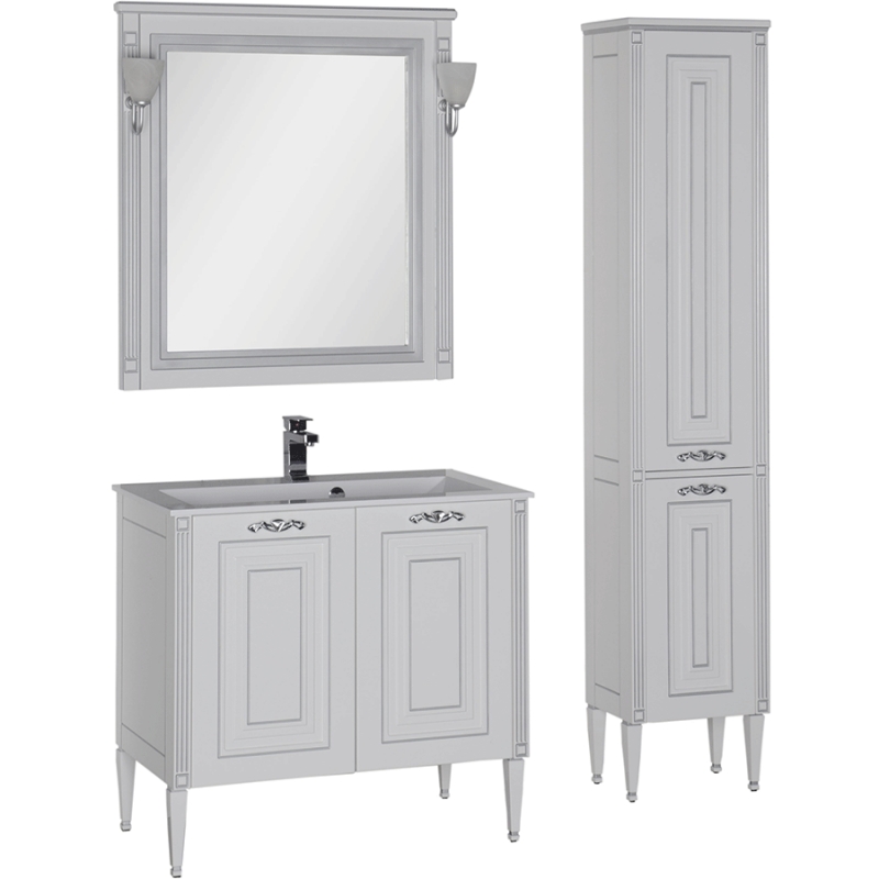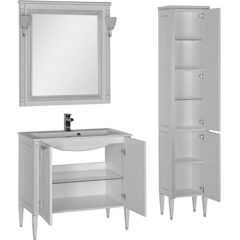 Комплект мебели для ванной Aquanet Паола 90 182133. Цвет: белый, патина серебро.