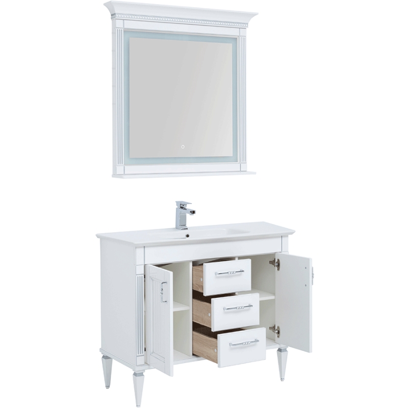 Комплект мебели для ванной Aquanet Селена 105 233129. Цвет: белый, патина серебро.