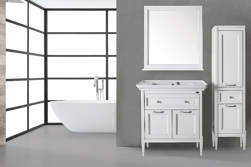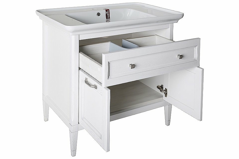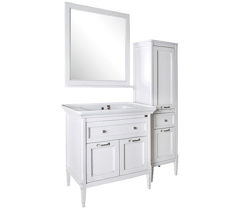 Закажите товар "Комплект мебели для ванной ASB-Woodline Гранда 85 Белый с патиной Серебро"