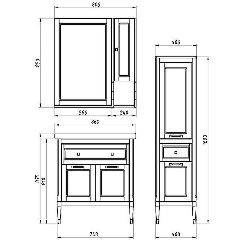Комплект мебели для ванной ASB-Woodline Гранда 85 (11487+23539+11481).