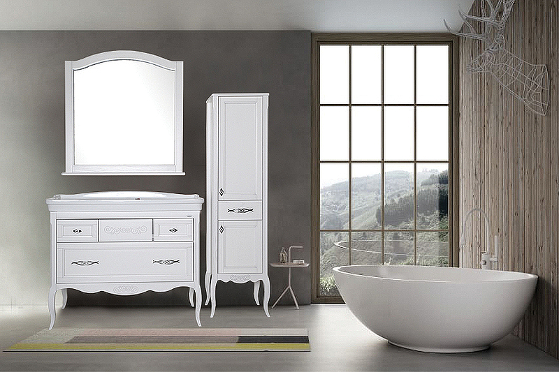 Закажите товар "Комплект мебели для ванной ASB-Woodline Модерн 105 Белый с патиной Серебро"