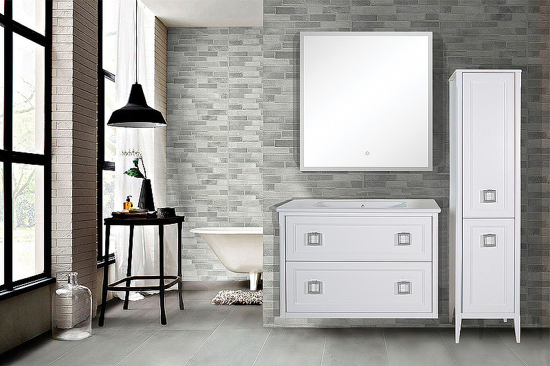 Закажите товар "Комплект мебели для ванной ASB-Woodline Рома 100П подвесной Белый"