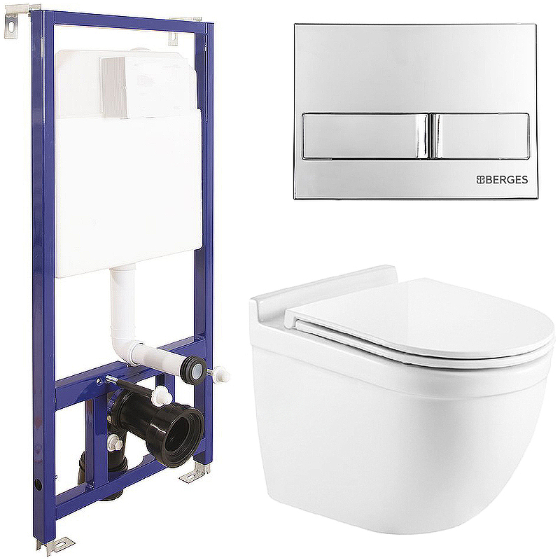 Закажите товар "Комплект унитаза CeramaLux 2198 с инсталляцией Berges Wasserhaus Novum L3 040213 с сиденьем Микролифт и клавишей смыва Хром"