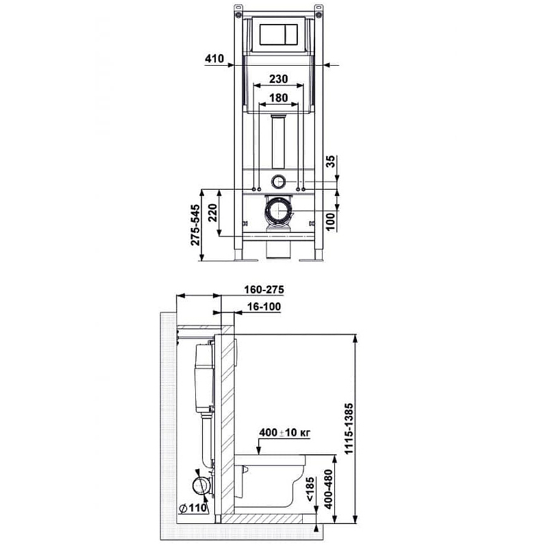 | Подвод воды к бачку | Механический с кнопкой |