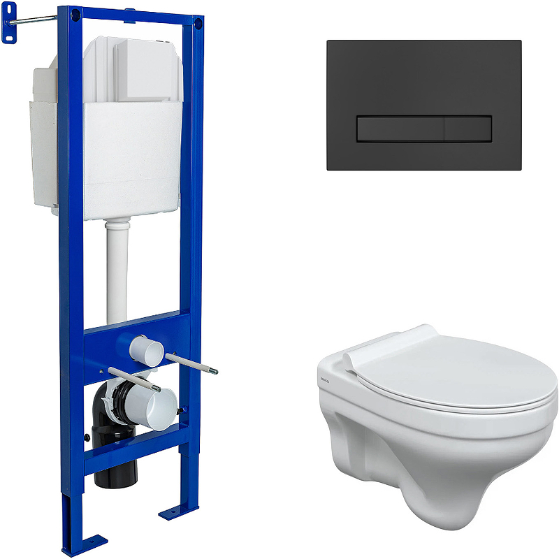 Закажите товар "Комплект унитаза с инсталляцией Berges Atom 042442 с сиденьем Микролифт и Черной клавишей смыва"