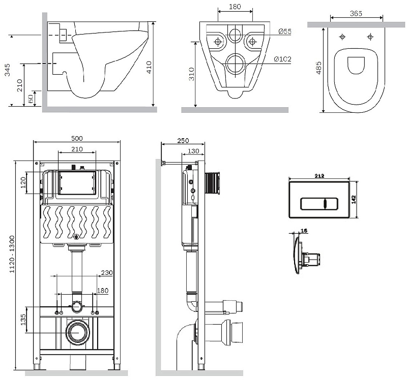 Комплект унитаза с инсталляцией AM.PM Spirit V2.0 FlashClean IS48051.701700 с сиденьем Микролифт и клавишей смыва Хром.