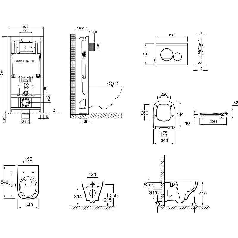 Закажите товар "Комплект унитаза с инсталляцией Jacob Delafon Struktura E21750RU-00 с сиденьем Микролифт и клавишей смыва Черная"