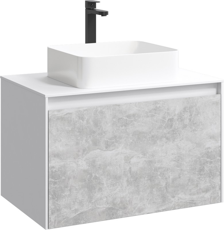 Корпус тумбы под раковину Aqwella 5 stars Mobi 80 MOB0108W гармонично впишется в интерьер любой современной ванной комнаты. Внутренняя отделка ящиков комбинированная: боковины – цвет бетон светлый, дно – дуб балтийский.