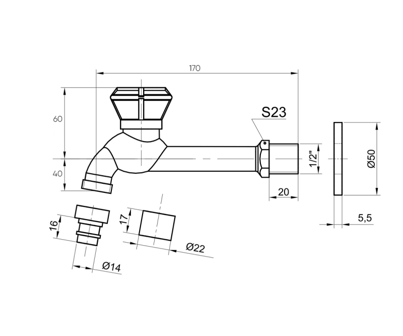 Кран Bronze de Luxe 13263/2, бронза (насадка под шланг).