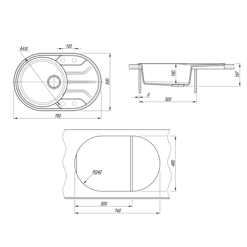 | Намеченные отверстия под смеситель | 4 |