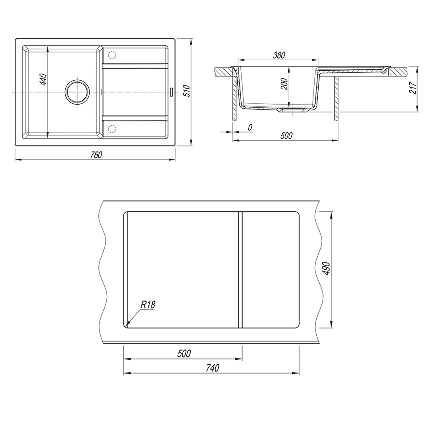 | Отверстия под смеситель | Нет |