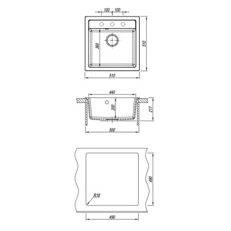 | Намеченные отверстия под смеситель | 3 |