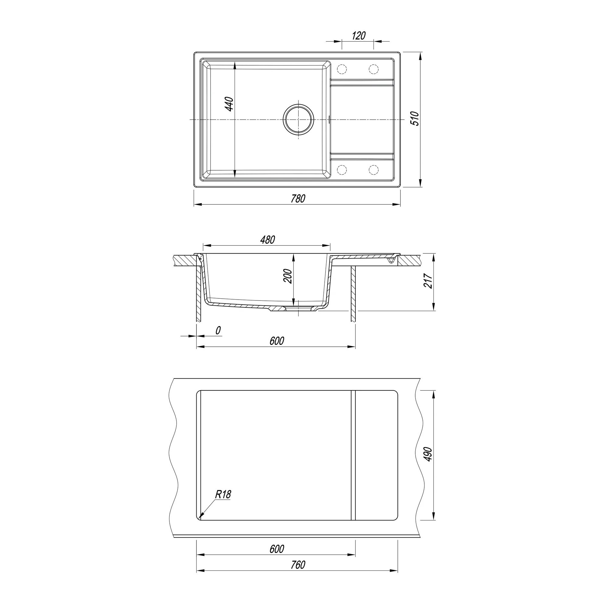 Мойка с чашей и плоским крылом. Классический, практичный дизайн. Модель оборачиваемая. Под шкаф 60 см. Дополнительное отверстие под аксессуары.