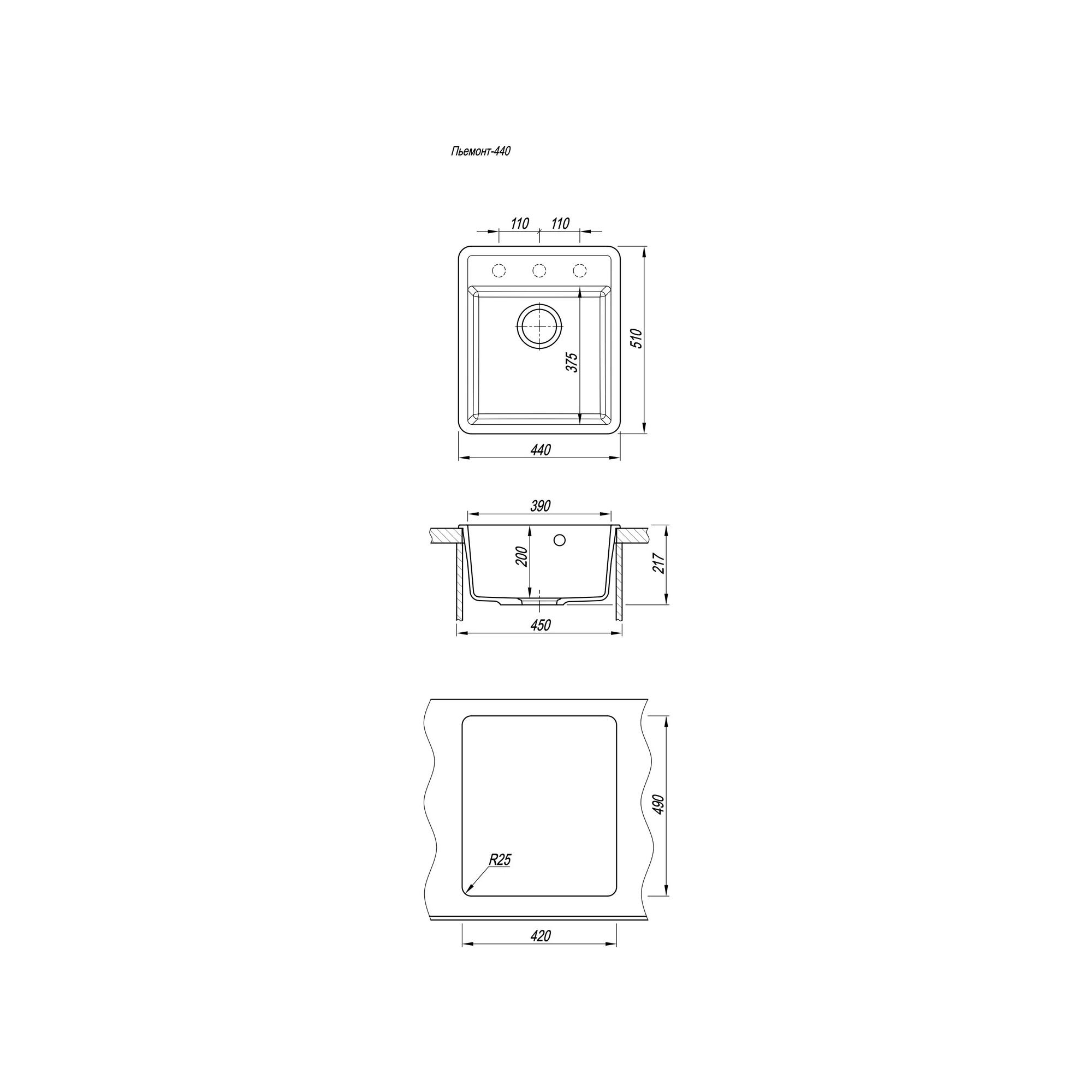 | Отверстия под смеситель | Нет |