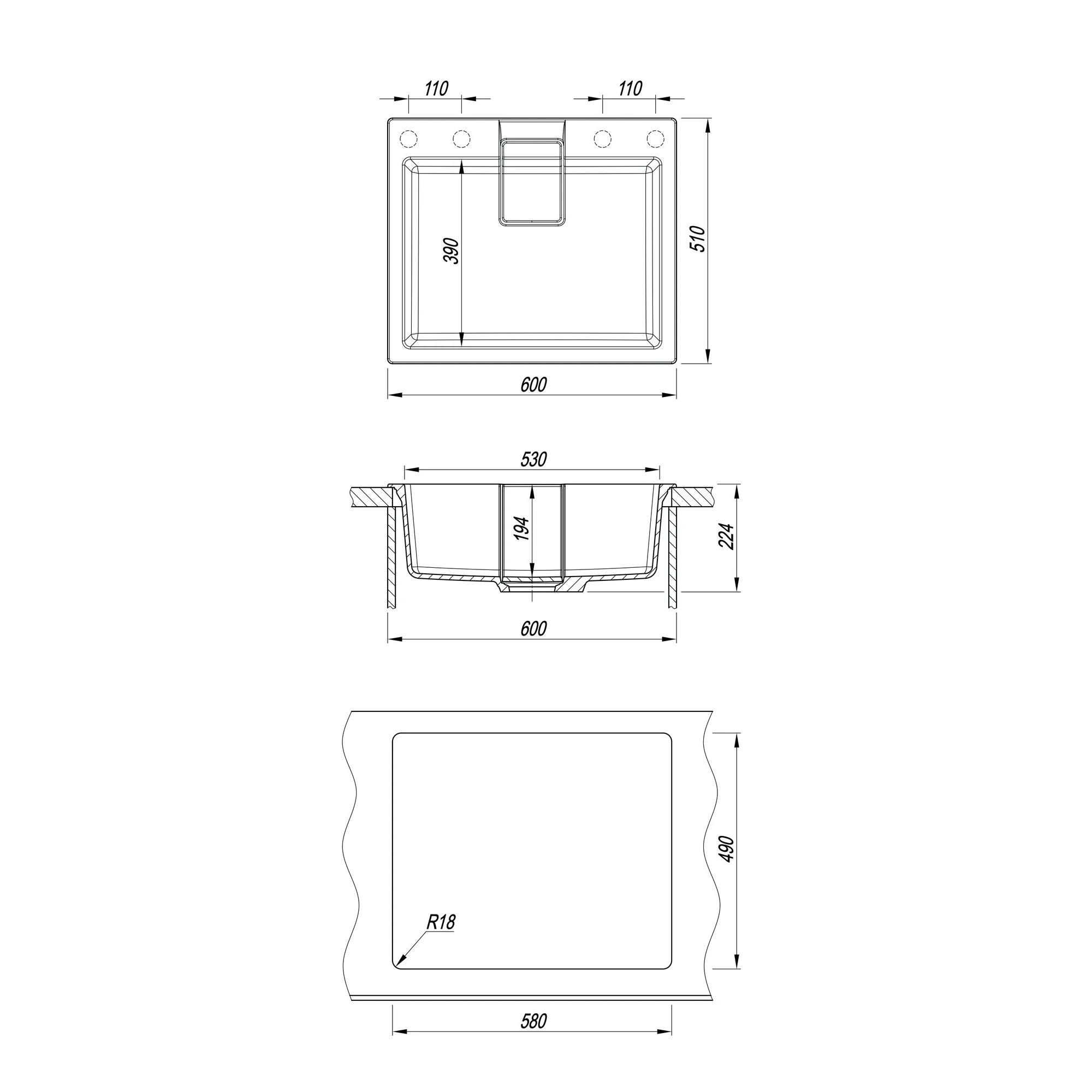 Мойка для кухонного шкафа 60 см. Материал — кварцевый композит.