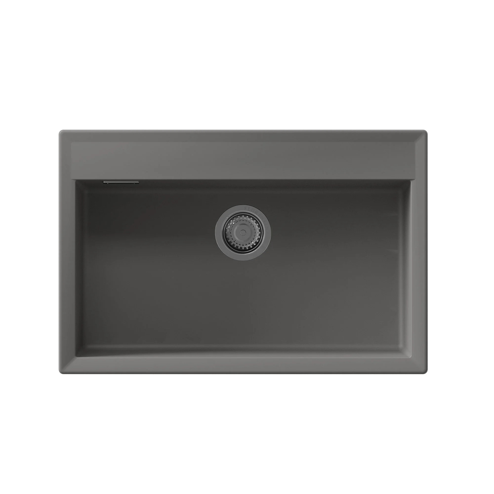 Прямоугольная мойка с большой чашей для кухонного шкафа 80 см. Материал — кварцевый композит. Предусмотрены доп. отверстия для установки аксессуаров.