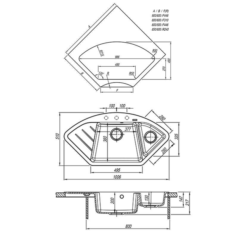Закажите товар "Кухонная мойка Florentina ВЕСТА 20.285.E1005.102, черный"