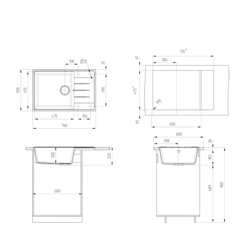 | Намеченные отверстия под смеситель | 2 |