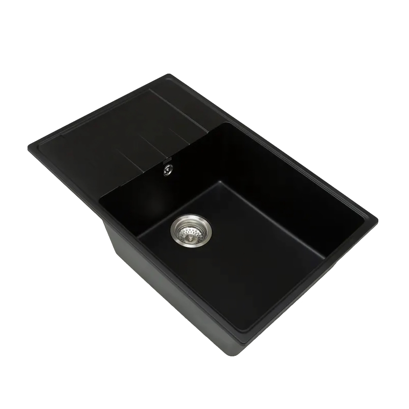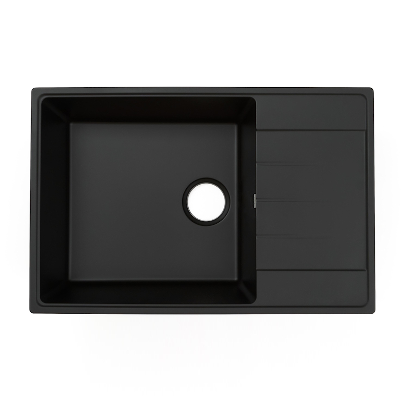 Кухонная мойка Grandex Aqua TOPLINE 76F CARBON. Grandex Aqua – мойки, смесители и аксессуары для кухни от команды, создавшей премиальные столешницы Grandex – символ надежности и стиля. Разработано с опытом, проверено временем. Главные принципы бренда: безопасность, комфорт и надежность. GRANDEX AQUA – это не только имя, но и качество, которое добавит новый уровень комфорта в Вашу жизнь. Материал мойки содержит минимум 80% натурального кварца, который обеспечивает высочайшую прочность и надежность, а также экологичность. Специальные гиброфобные добавки делаю материал не впитывающим и дополнительно защищают мойку от пятен и грязи. Мойка не боится кипятка и выдерживает температуру больше 150 градусов. Строгие линии и минимальные радиусы делают мойку эстетически привлекательной и премиальной. Продукция бренда GRANDEX AQUA разработана с учетом опыта профессионалов кухонного рынка, что позволяет ей быть максимально удобной и функциональной, а также украсить собой эстетику вашего кухонного пространства.