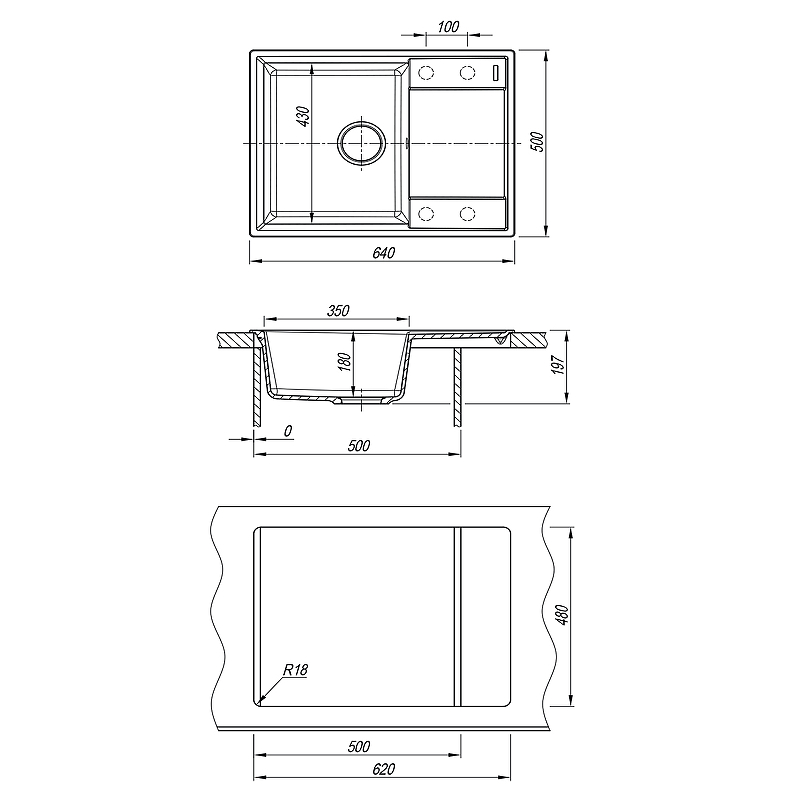 | Отверстия для смесителя | С 2 отверстиями под смеситель. 3. Без отверстий под смеситель. 1 |
