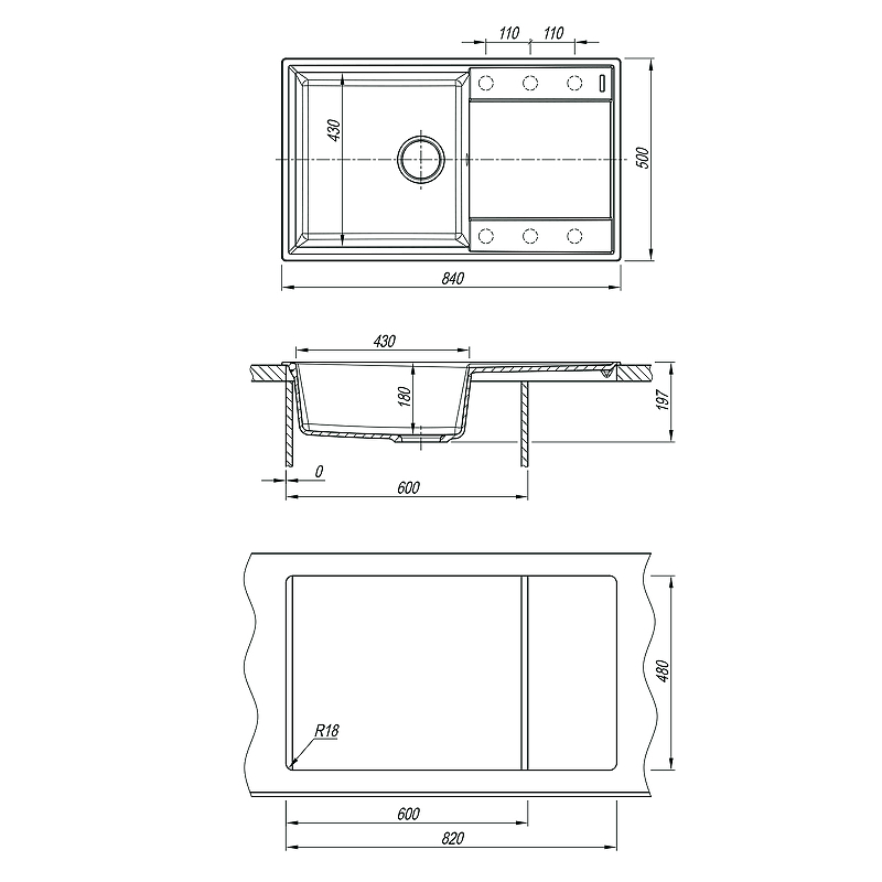 Отверстия для смесителя | С 1 отверстием под смеситель. 2. 3. Без отверстий под смеситель |