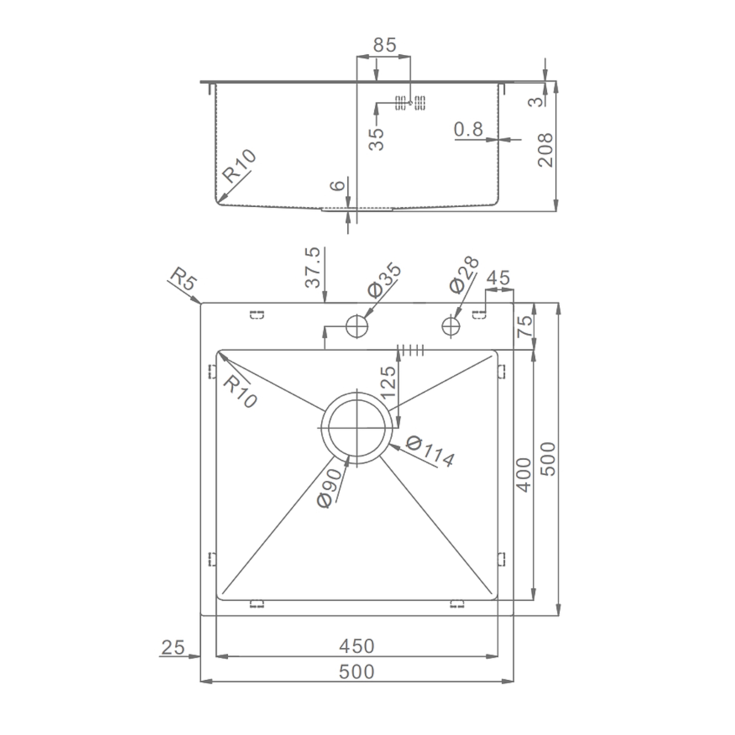 Кухонная мойка Raglo (универсальный монтаж) Кухонные мойки Raglo отличаются практичностью и современным дизайном. Прямоугольные и квадратные раковины для кухни из нержавейки станут идеальным решением для любой кухни. Врезная раковина для кухни обеспечивает комфортное использование и стильный внешний вид. Нержавеющая врезная мойка - отличный выбор для тех, кто ценит качество и долговечность. Металлическая раковина для кухни добавит вашей кухне современности и функциональности. Толщина стали: верх - 3 мм / чаша - 0.8 мм, дополнительное отверстие для установки дозатора Тип установки - на столешницу / в столешницу / под столешницу Комплектующие - коландер, сифон с выходом для подключения посудомоечной машины и фильтра для питьевой воды, крепления.