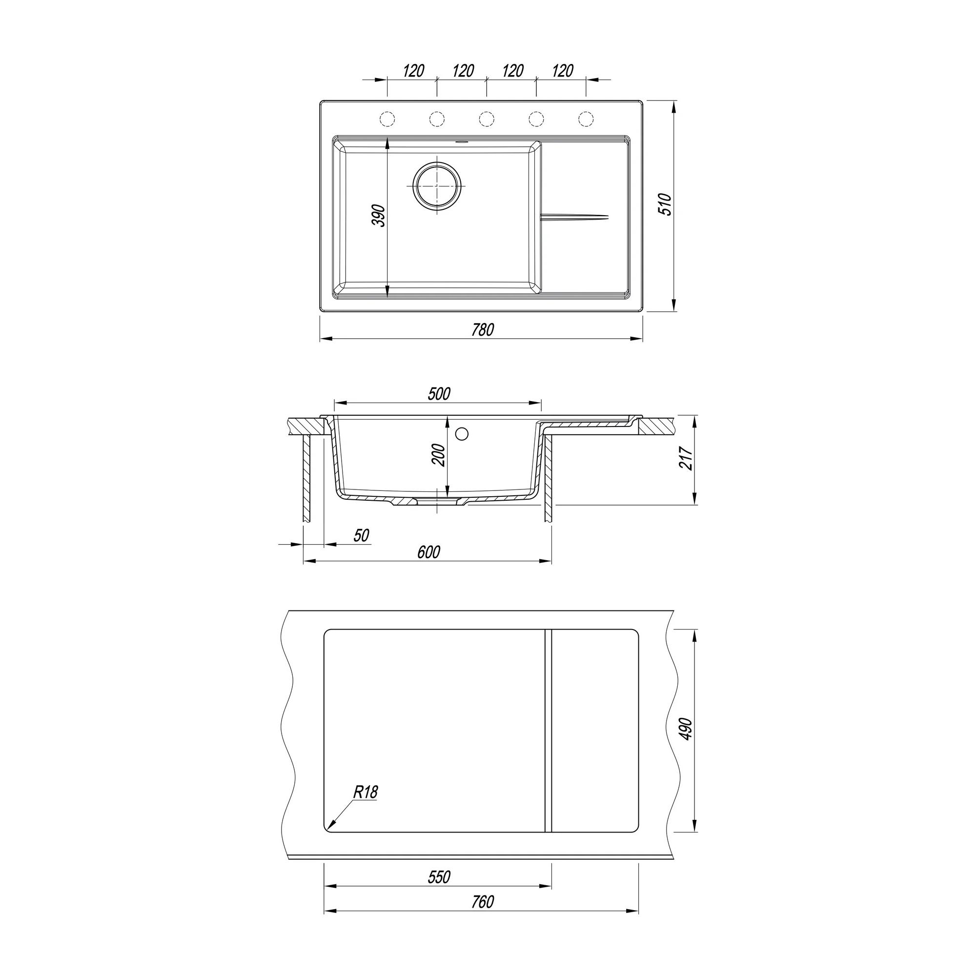 | Намеченные отверстия под смеситель | 4 |