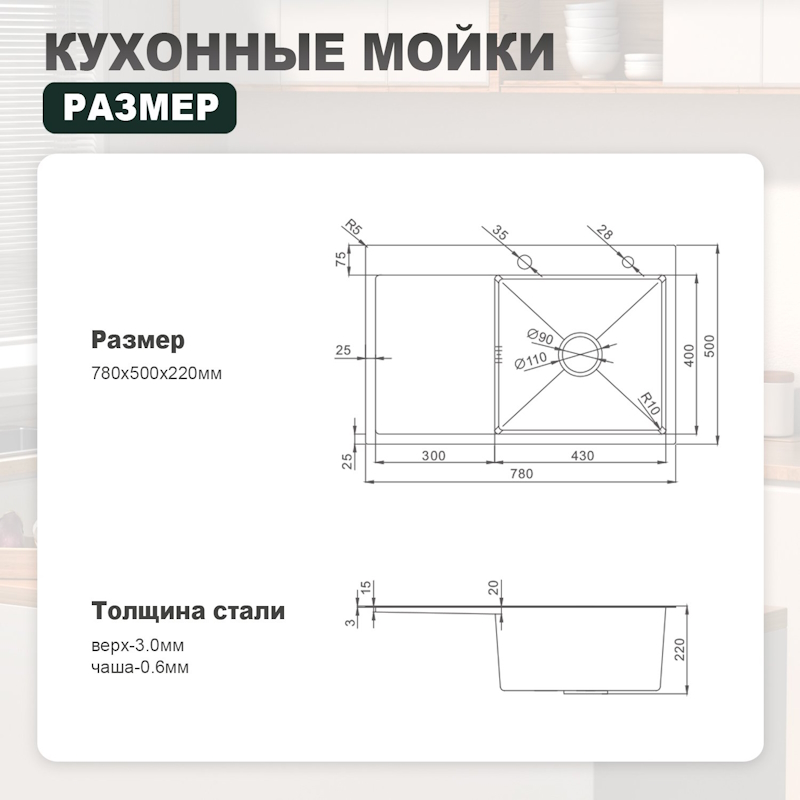 | Монтаж | Встраиваемый в столешницу, Встраиваемый сверху, Встраиваемый снизу |