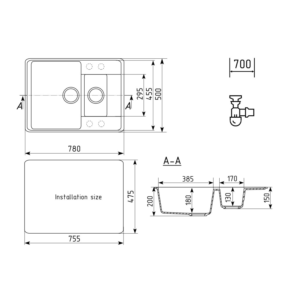 | Намеченные отверстия под смеситель | net |