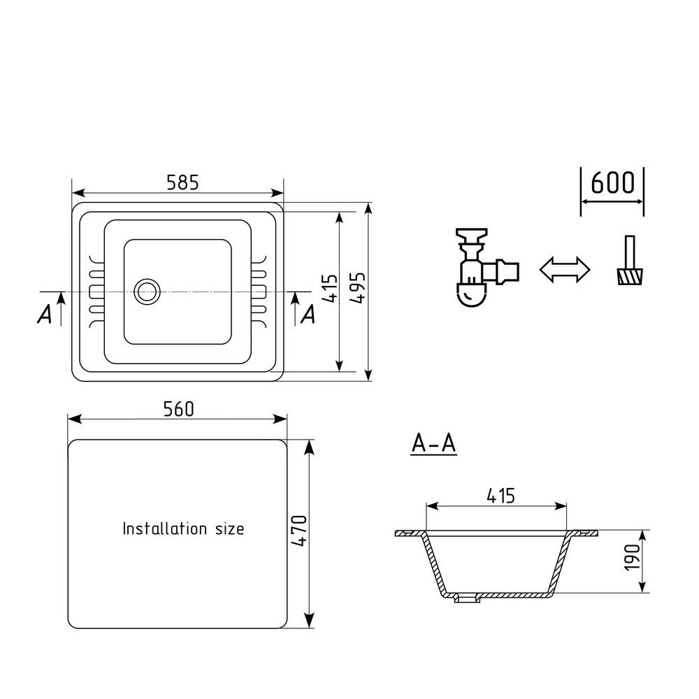 | Комплектация | Мойка, сливная арматура, корзинчатый вентиль, сифон. |