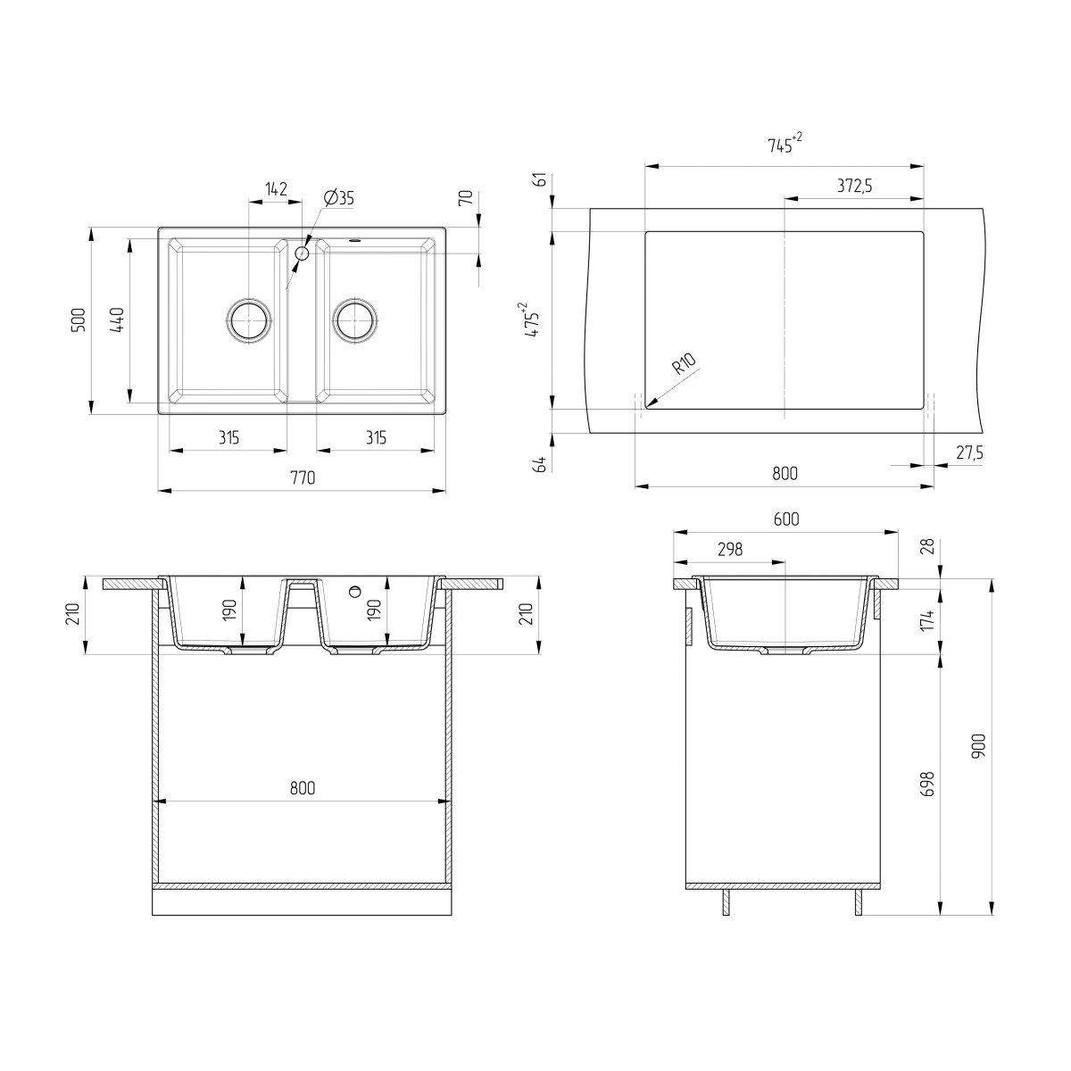 | Комплектация | Мойка, сливная арматура, корзинчатый вентиль, сифон. |