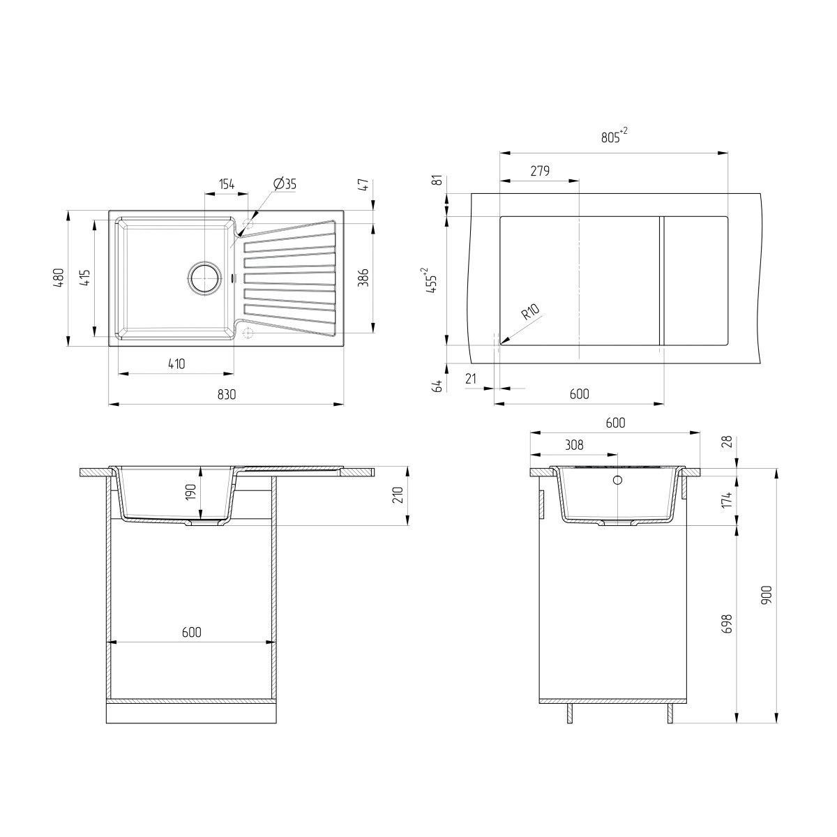 | Монтаж | Встраиваемый сверху |