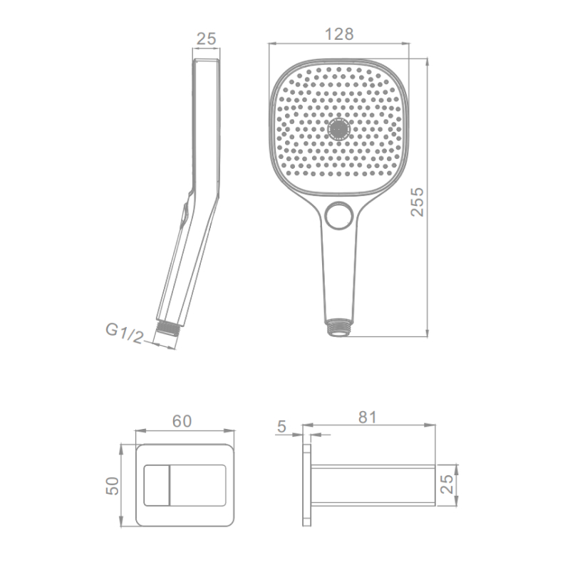 Держатель для душевой лейки + Набор для душа Артикул: R476.41.03 • Материал - латунь/пластик • Цвет - сатин золотой (матовое золото) • Душевая лейка - 3 режима (пластик/силикон) • Душевой шланг силиконовый 1.5м