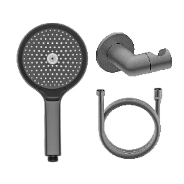 Держатель для душевой лейки + Набор для душа Артикул: R476.43.09 • Материал - латунь/пластик • Цвет - графит • Душевая лейка - 3 режима (пластик/силикон) • Душевой шланг силиконовый 1.5м