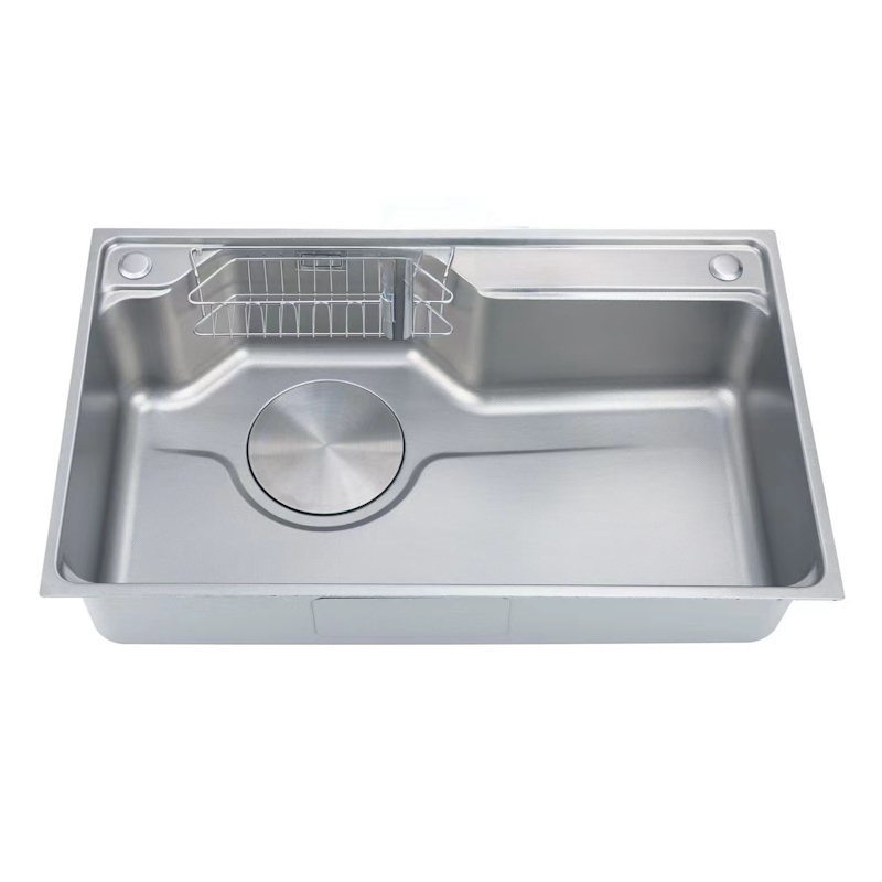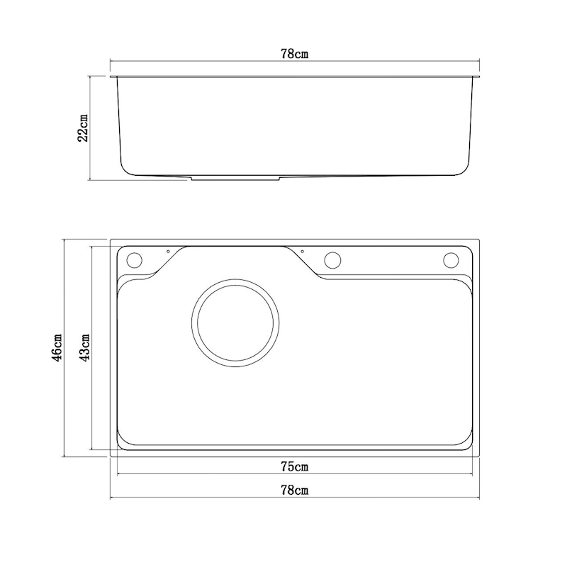 Мойка кухонная Fmark FSC7846L прямоугольная врезная из нержавеющей стали Материал: Нержавеющая сталь AISI 201 Страна производства: Китай Форма: Прямоугольная Способ установки: Врезная сверху столешницы Размеры изделия: длина — 780 мм, ширина — 460 мм, высота — 220 мм Отверстия для монтажа: 1 шт., размер отверстия — 760×440 мм Гарантийный срок: 1 год Упаковка: Картонная коробка размером 84х52х27 см Толщина материала: 0,65 мм Толщина бортика: 3 мм Защитное покрытие: PVD-покрытие Комплект: кухонная мойка, сифон, крышка слива в цвет мойки, корзинка в слив для сбора мусора, корзина для кухонных предметов, разделочная доска Поверхность сатинового цвета с водоотталкивающим покрытием обеспечивает защиту от загрязнений и облегчает уход. Универсальность позволяет устанавливать изделие практически в любую кухню независимо от стиля интерьера. Практичная форма, оптимальные размеры и доступная цена делают данную мойку идеальным выбором для современной кухни.
