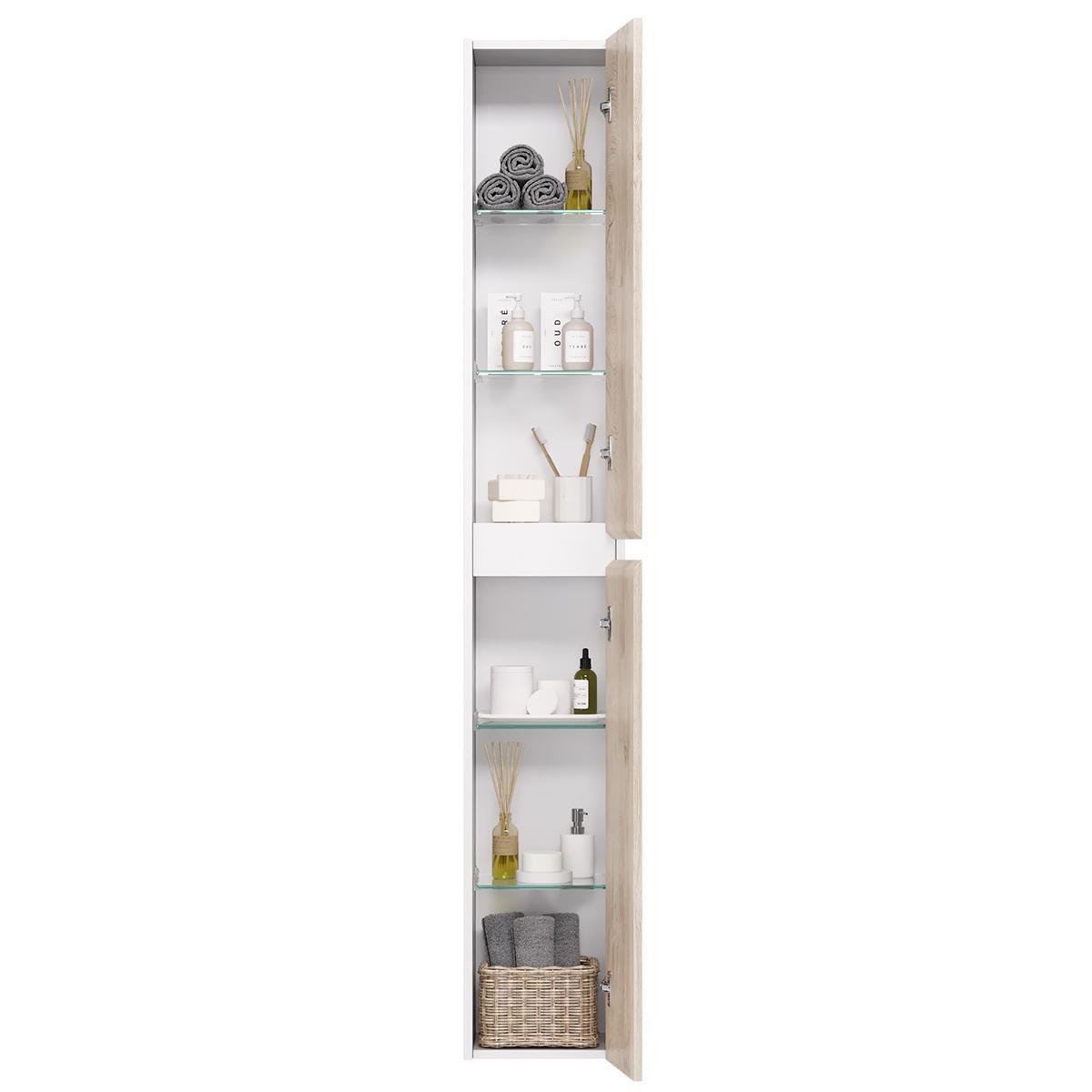 Пенал Dreja Slim 30 см, белый/дуб кантри. Компоновка: 2 дверцы, 4 стеклянные полки.