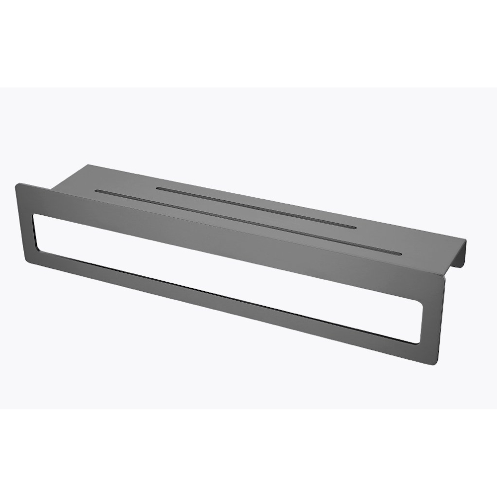 Полка для ванной комнаты с держателем полотенец Raglo R340.04.09, графит. Размер: 41x11,5x9 см.   Тип крепления: на болтах. Материал: нержавеющая сталь.