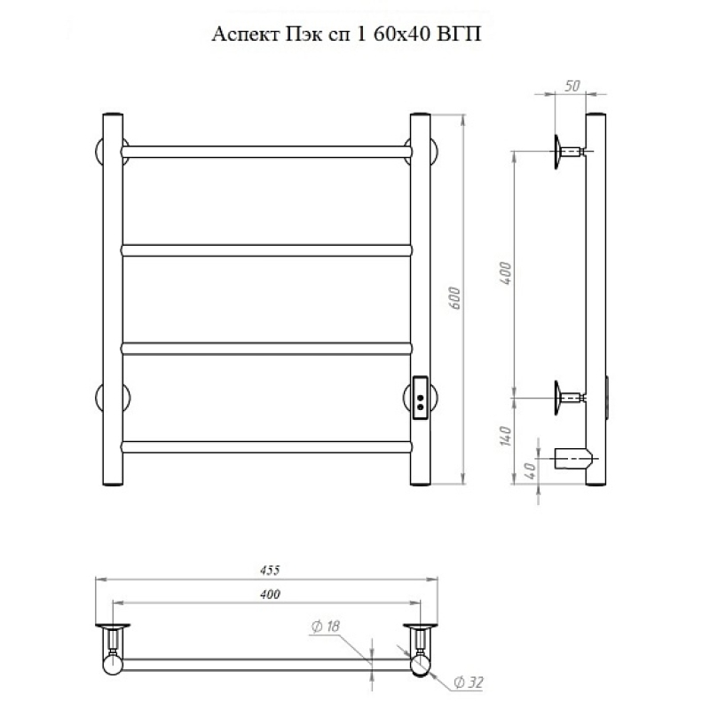 Закажите товар "Полотенцесушитель электрический (лесенка) Тругор Аспект Пэк сп 1 60х40 см, графит"