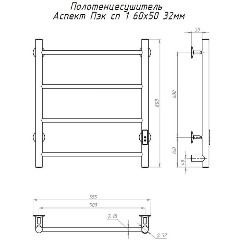Закажите товар "Полотенцесушитель электрический (лесенка) Тругор Аспект Пэк сп 1 60х50 см"