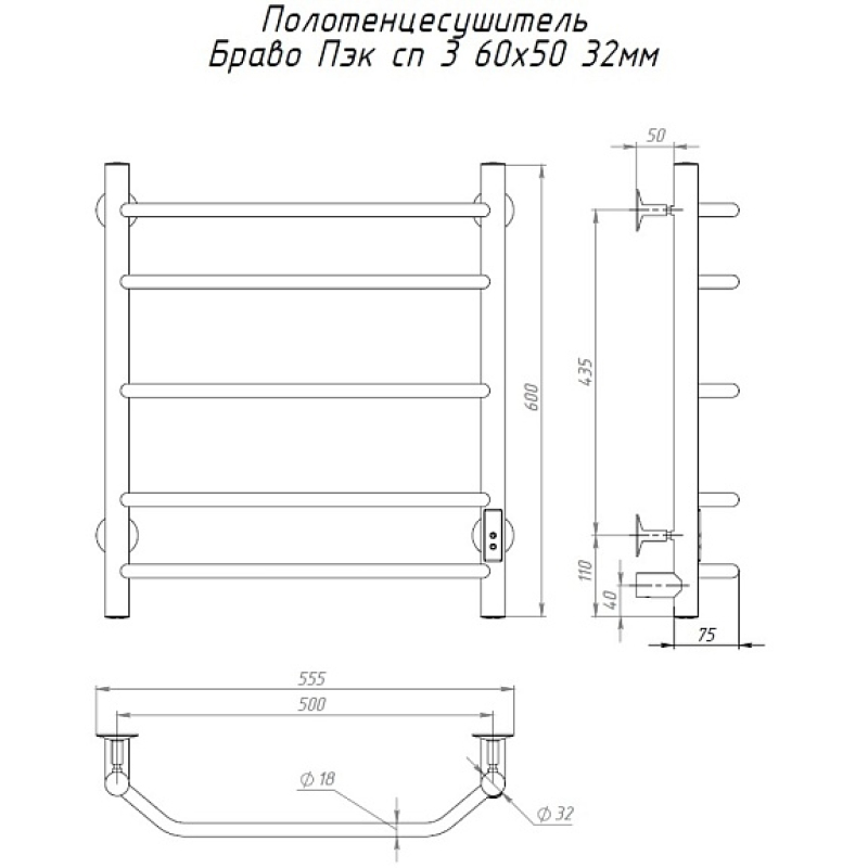Закажите товар "Полотенцесушитель электрический (лесенка) Тругор Браво Пэк сп 3 60х50 см"