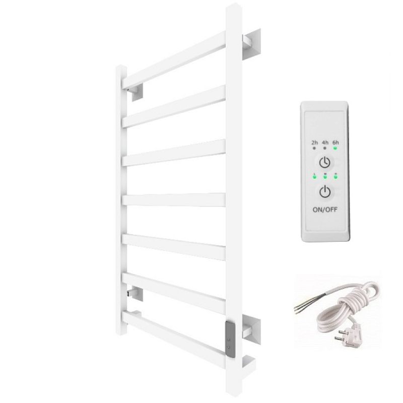 Полотенцесушитель Пэк сп 20 кв 80х50 белый ВГП. Коллекция: ПЭК сп 20. Тип: электрический. Форма: лесенка. Мощность (Вт): не более 100Вт. Количество перекладин: 7. Материал:  сталь. Подключение: скрытое электрическое соединение/электропровод с вилкой. Дополнительная информация: выключатель с таймером на 2, 4 и 6 часов работы и терморегулятором встроен в коллектор полотенцесушителя.